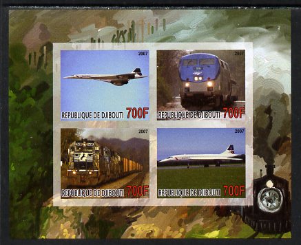 Djibouti 2007 Railways & Concorde #2 imperf sheetlet containing 4 values unmounted mint. Note this item is privately produced and is offered purely on its thematic appeal