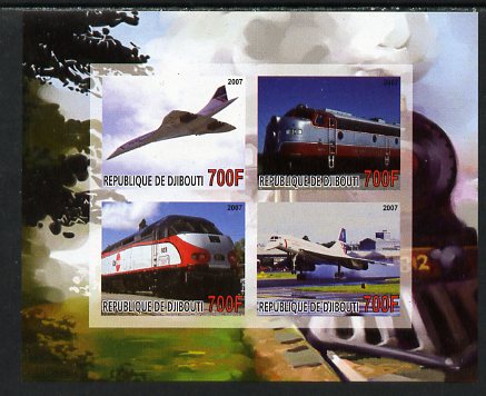 Djibouti 2007 Railways & Concorde #3 imperf sheetlet containing 4 values unmounted mint. Note this item is privately produced and is offered purely on its thematic appeal