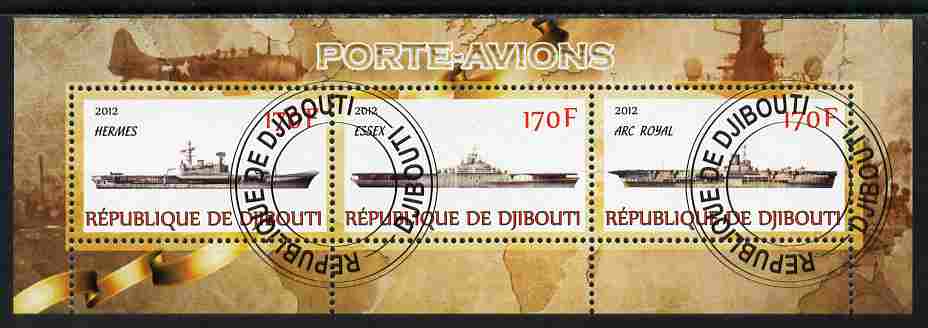 Djibouti 2012 Aircraft Carriers #1 perf sheetlet containing 3 values fine cto used