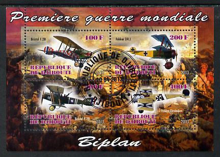Djibouti 2013 Aircraft of WW1 (Biplanes) perf sheetlet containing 4 values cto used