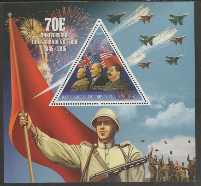 Djibouti 2015 End of WW2 - 70th Anniversary perf deluxe sheet containing one triangular shaped value unmounted mint