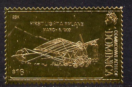 Dominica 1978 History of Aviation (Santos-Dumont's Dragonfly) $16 embossed on 23k gold foil unmounted mint