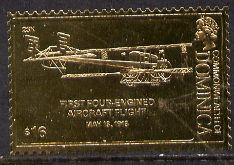 Dominica 1978 History of Aviation (Sikorsky LeGrand - First 4-engined Aircraft) $16 embossed on 23k gold foil unmounted mint