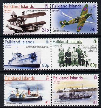 Falkland Islands 2005 60th Anniversary of End of Second World War set of 6 (3 se-tenant pairs) unmounted mint SG 1015-20
