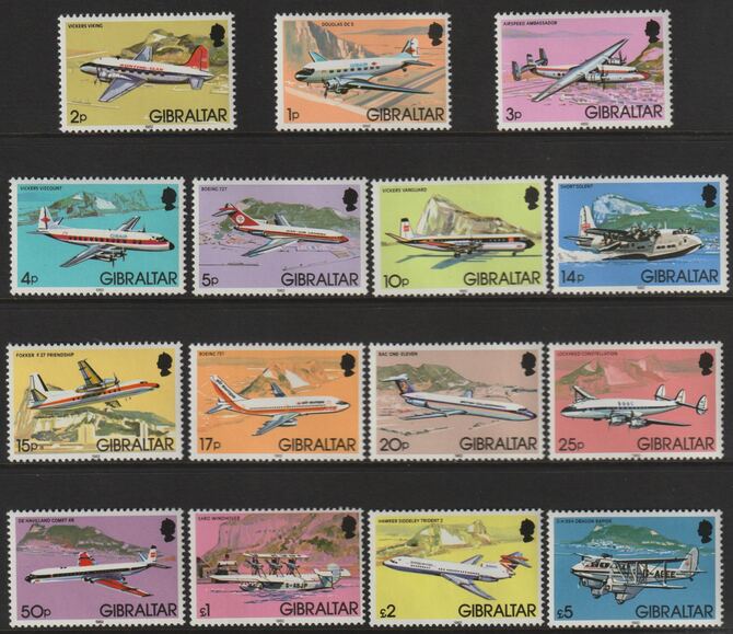 Gibraltar 1982 Aircraft complete set of 15 to £5 unmounted mint, SG 460-74