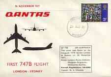 Great Britain 1971 Qantas illustrated first flight cover of Boeing 747B to Sydney with 26 Nov cancel and flight details