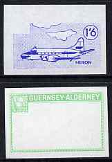 Guernsey - Alderney 1967 Aircraft - 1s6d Heron imperf proofs comprising the central vignette in blue and the frame in emerald, both unmounted mint as Rosen CSA 80
