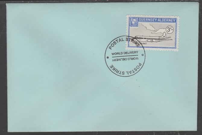 Guernsey - Alderney 1971 POSTAL STRIKE unaddressed cover bearing 3s Viscount cancelled with World Delivery postmark