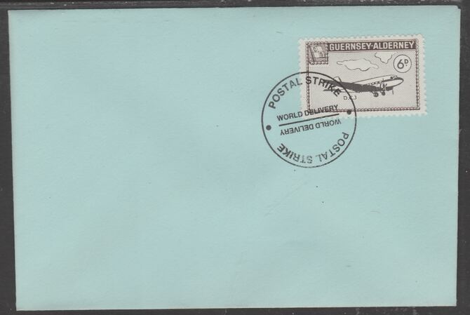 Guernsey - Alderney 1971 POSTAL STRIKE unaddressed cover bearing 6d Douglas DC-3 cancelled with World Delivery postmark