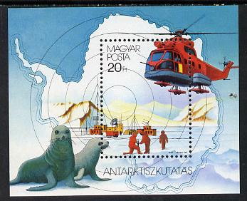 Hungary 1987 Antarctic perf m/sheet (Helicopter, Map, Seals) unmounted mint, Mi BL 190