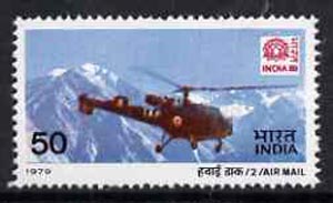 India 1979 'India 80' International Stamp Exhibition 50p (Helicopter) unmounted mint SG 943*
