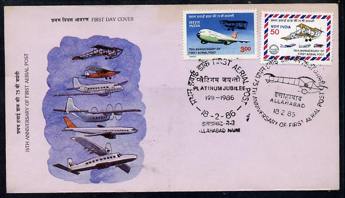 India 1986 Anniversary of Airmail Flight set of 2 on unaddressed FDC, numbered example actually carried on the same aircraft, SG 1185-86