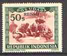 Indonesia 1948-49 perforated 50s produced by the Revolutionary Government in red-brown & green showing air-crew studying a map, opt'd 'RESMI' (prepared for Official use) without gum