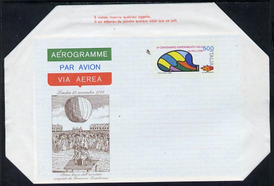 Italy 1983 First Balloon Flight Anniversary 500L Aerogramme unused and fine, folded along fold lines
