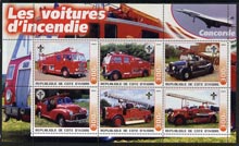 Ivory Coast 2003 Fire Engines #2 perf sheetlet containing set of 6 values (each with Scout Logo & Concorde in Margin) unmounted mint
