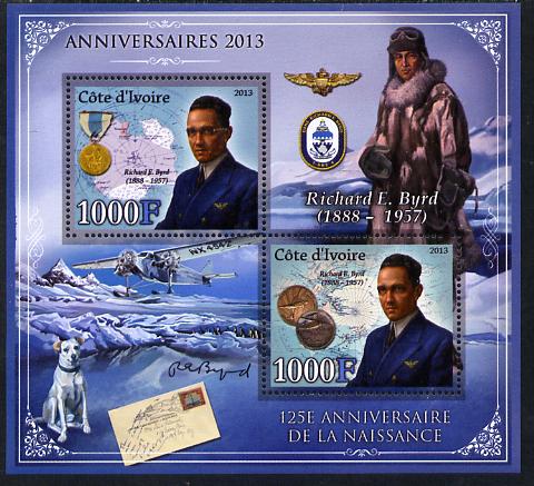 Ivory Coast 2013 Anniversaries - 125th Birth Anniversary of Richard Byrd perf sheetlet containing 2 values unmounted mint