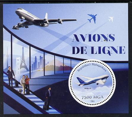 Madagascar 2014 Airliners perf souvenir sheet containing circular shaped value unmounted mint