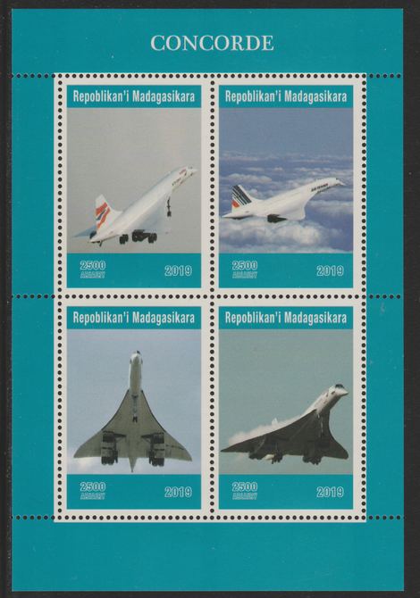 Madagascar 2019 Concorde perf sheetlet containing 4 values unmounted mint. Note this item is privately produced and is offered purely on its thematic appeal, it has no postal validity