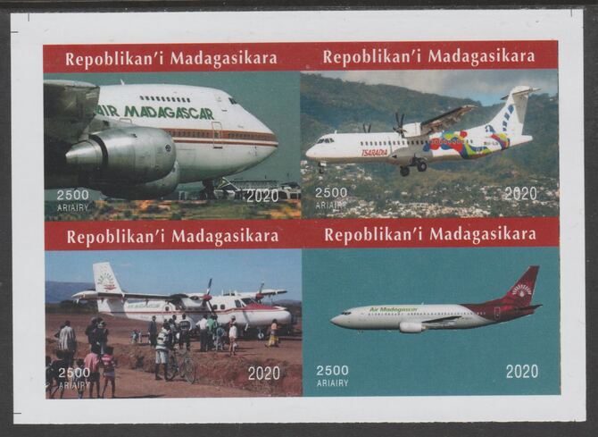 Madagascar 2020 Aircraft imperf sheetlet containing 4 values unmounted mint. Note this item is privately produced and is offered purely on its thematic appeal, it has no postal validity