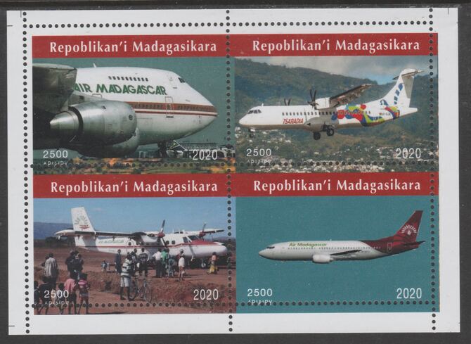 Madagascar 2020 Aircraft perf sheetlet containing 4 values unmounted mint. Note this item is privately produced and is offered purely on its thematic appeal, it has no postal validity
