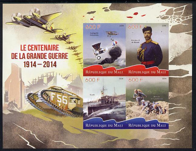 Mali 2015 Centenary of start of First World War imperf sheetlet containing set of 4 unmounted mint