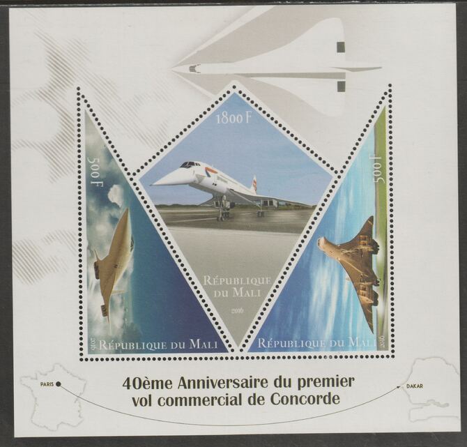 Mali 2016 Concorde #2 - 40th Anniversary perf sheet containing three shaped values unmounted mint