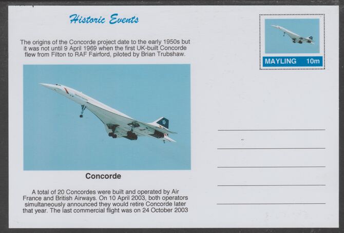 Mayling (Fantasy) Historic Events - Concorde - glossy postal stationery card unused and fine