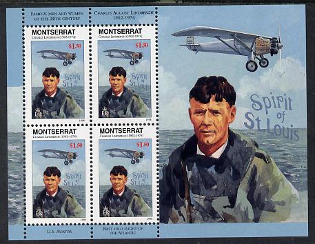 Montserrat 1998 Famous People of the 20th Century - Charles Lindbergh (aviator) perf sheetlet containing 4 vals unmounted mint as SG 1074a
