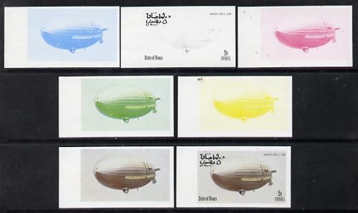 Oman 1977 Airships 5b (Akron ZRS-4 1929) set of 7 imperf progressive colour proofs comprising the 4 individual colours plus 2, 3 and all 4-colour composites unmounted mint