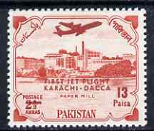 Pakistan 1962 First Karachi-Dacca Jet Flight 13p on 2.5a unmounted mint, SG 155