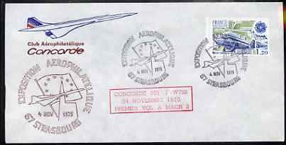Postmark - France 1977 illustrated commem cover for the 'Strasbourg Exposition Aerophilatelique' with illustrated cancel showing Concorde, & Mach 2 Anniversary cachet in red