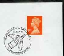 Postmark - Great Britain 2001 cover with '50th Anniversary of De Havilland' Hatfield cancel illustrated with DH 110