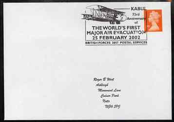 Postmark - Great Britain 2002 cover with Kabul 73rd Anniversary of first Air Evacuation cancel illustrated with Biplane