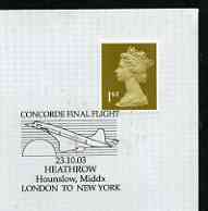 Postmark - Great Britain 2003 cover for final Concorde flight London to New York with special cancel illustrated with Concorde (23rd October)