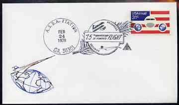 Postmark - United States 1978 illustrated commem cover for 75th Anniversary of Powered Flight with illustrated cancel showing Concorde & Wright Flyer