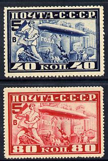 Russia 1930 Graf Zeppelin perf set of 2 mounted mint SG 574-75