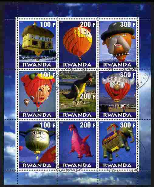 Rwanda 2000 Balloons perf sheetlet containing 9 values fine cto used