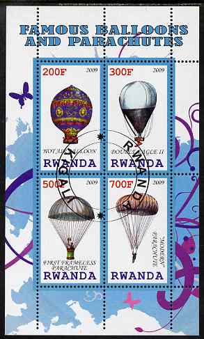 Rwanda 2009 Hot Air Balloons perf sheetlet containing 4 values fine cto used