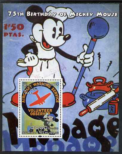 Somalia 2004 75th Birthday of Mickey Mouse #20 - Volunteer Observer perf m/sheet unmounted mint