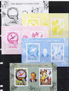 Somalia 2004 75th Birthday of Mickey Mouse #24 - Volunteer Observer & Photographer sheetlet containing 2 values plus,the set of 5 imperf progressive proofs comprising the 4 individual colours plus all 4-colour composite, unmounted mint