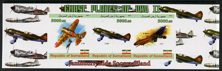 Somaliland 2011 Chase Planes of WW2 #01 imperf sheetlet containing 3 values unmounted mint