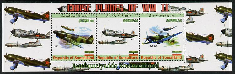 Somaliland 2011 Chase Planes of WW2 #02 perf sheetlet containing 3 values unmounted mint