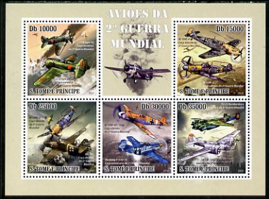 St Thomas & Prince Islands 2010 Aircraft of World War II perf sheetlet containing 5 values unmounted mint