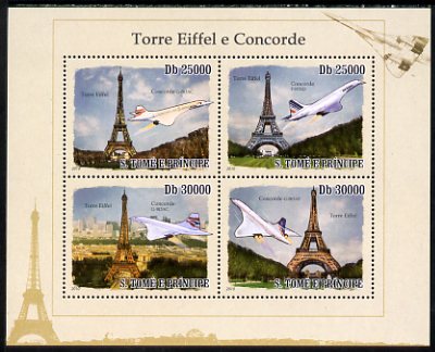 St Thomas & Prince Islands 2010 Eiffel Tower & Concorde perf sheetlet containing 4 values unmounted mint