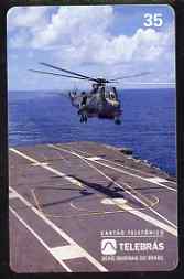 Telephone Card - Brazil 35 units phone card showing Helicopter landing on Aircraft Carrier