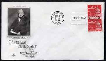United States 1962 DC-8 over Capitol 8c coil stamp on illustrated cover (featuring Sir George Cayley (aerial navigator) with first day cancel, SG A1210