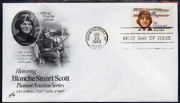 United States 1980 Aviation Pioneers - Blanche Stuart Scott on illustrated cover with first day cancel, SG A1839