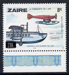 Zaire 1985 Sabena Anniversary 10z on 8k (Macchi & Sikorski) with silver and black opts both inverted, SG 1219var