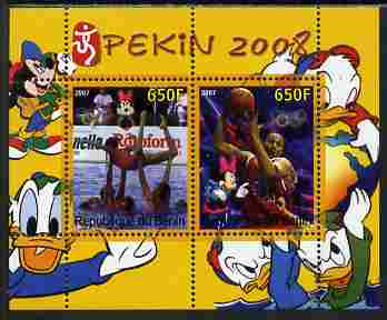 Benin 2007 Beijing Olympic Games #13 - Synch Swimming & Basketball perf s/sheet containing 2 values (Disney characters in background) unmounted mint. Note this item is privately produced and is offered purely on its thematic appeal