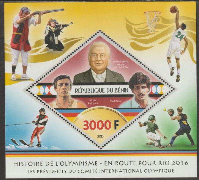 Benin 2015 History of the Olympic Games #7 perf m/sheet containing one diamond shaped value unmounted mint